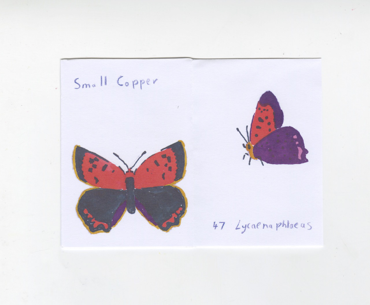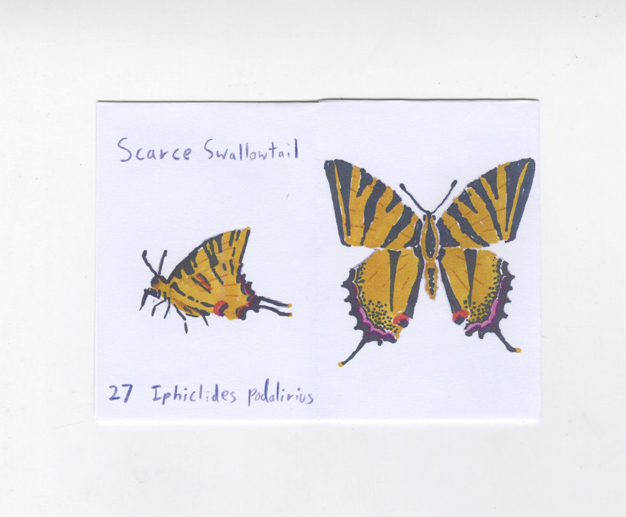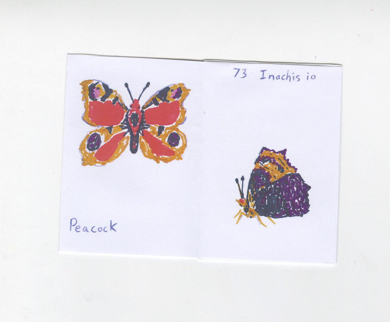 Made in an eco zine workshop, a few limited colour drawings of specimens from an already concise butterfly guide.